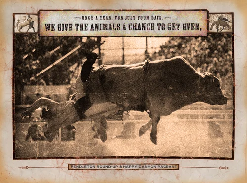 Posters touting some of the man vs. beast drama one might enjoy at the Pendleton Roundup, a 100-year-old rodeo event held annually in Eastern Oregon.